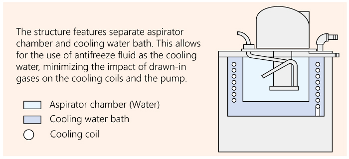 | The aspirator chamber and cooling water bath are separate and independent (see the schematic of the double-chamber structure below); therefore, even if the water contains organic solvents through suction, the water in the aspirator chamber can be treated as waste liquid. | — |