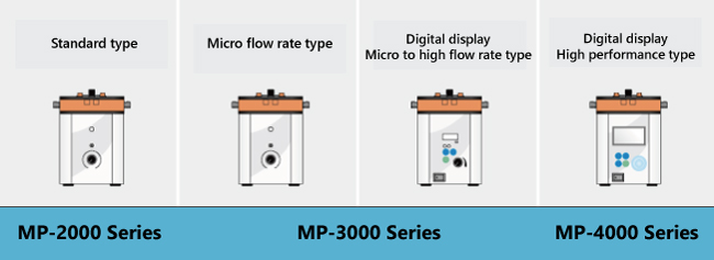 While many different structures and mechanisms exist, metering pumps (Constant flow pumps) are specifically used when a liquid must be delivered at a fixed flow rate or velocity. They are essential in fields such as food, pharmaceuticals, biotechnology, chemical synthesis, and semiconductors, serving a wide range of applications from laboratory research to full-scale production lines.
