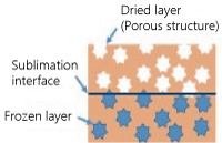 In contrast to general drying, which involves “evaporation” from liquid to gas, freeze-drying is a drying method that involves “sublimation” from a solid (ice) to a gas (water vapor). During sublimation, the sample temperature remains at approximately -30°C.