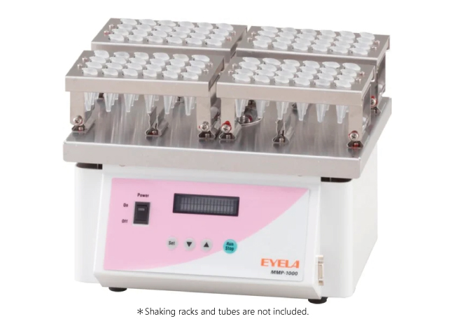 ・The unit can simultaneously shake up to four deep-well plates, eight microplates, or 96 microtubes.
