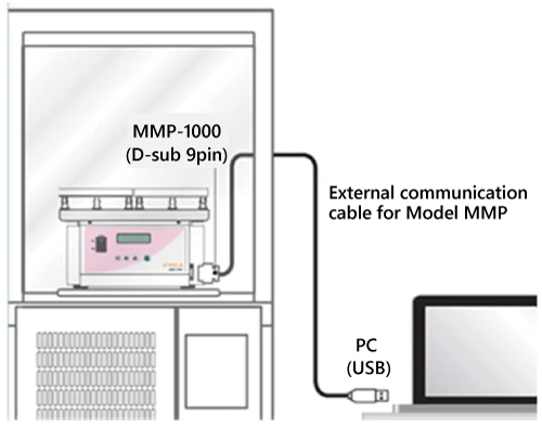 By using the communication cable and dedicated software, shaking ON/OFF, shaking speed, and timer settings can be controlled from a PC.