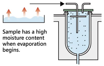 | ◇ Samples bump when the vacuum is drawn without any vacuum control. ◇ After vacuum drying, splattered samples get baked onto the interior walls, making them impossible to remove even with cleaning. | ◇ Rapidly suctioning samples with high moisture and high volatility overloads the cooling trap, causing the temperature to rise and significantly delaying the drying time. |